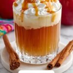 Top your spiced apple juice with a generous spoonful of the freshly whipped cream. To make it truly special, drizzle 1 to 2 tablespoons of caramel sauce across the top. This extra touch of buttery sweetness adds an irresistible visual appeal and a rich flavor that perfectly complements the cinnamon apple base.