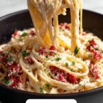 Add the cooked spaghetti to the skillet and toss gently so every strand is beautifully coated with that creamy, cheesy mixture. This step is crucial because it ensures each bite has balanced flavor.